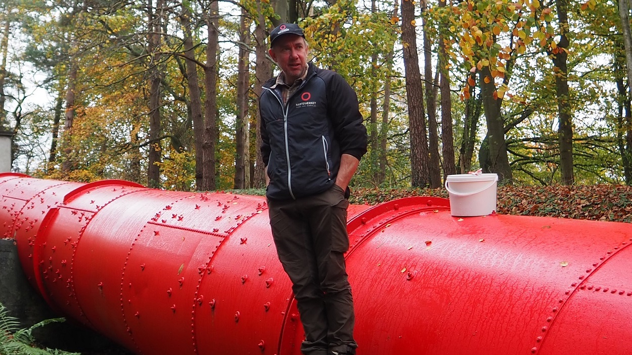 Her demonstreres vandets kraft fra trykrøret, via en "vandkanon"