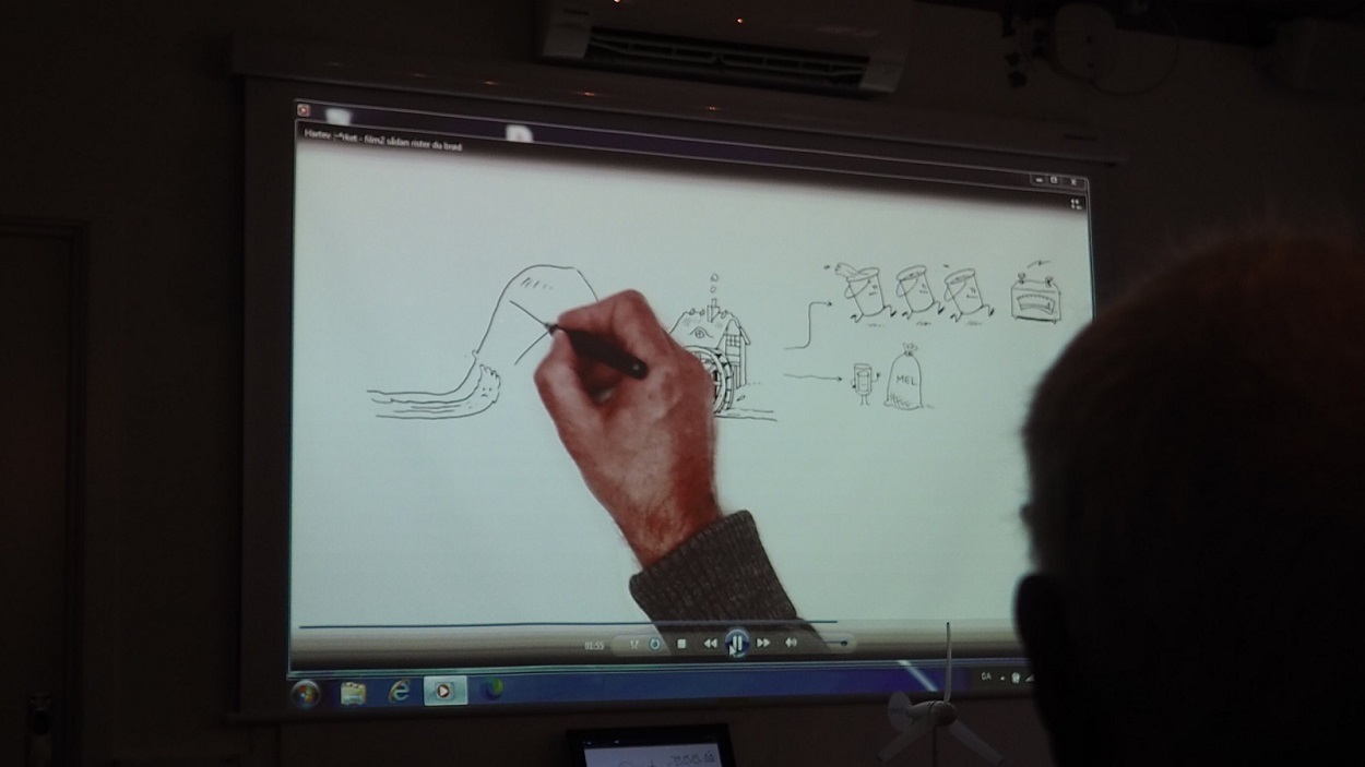 Her demonstreres vandets kraft fra trykrøret, via en "vandkanon"