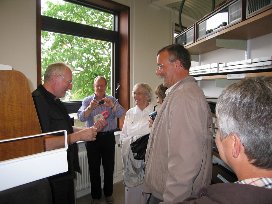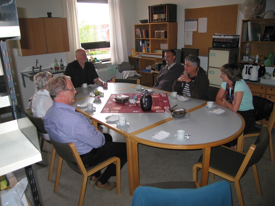 Efter fremvisning af museet, hygges der om kaffebordet i museets arbejdsrum