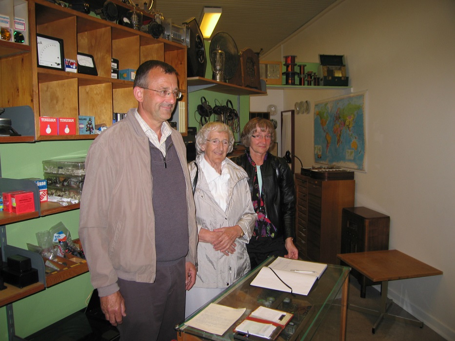 Bag disken i den forretning som Andreas Duus etablerede i 1952 ses Ruth Duus med sønnen og datteren