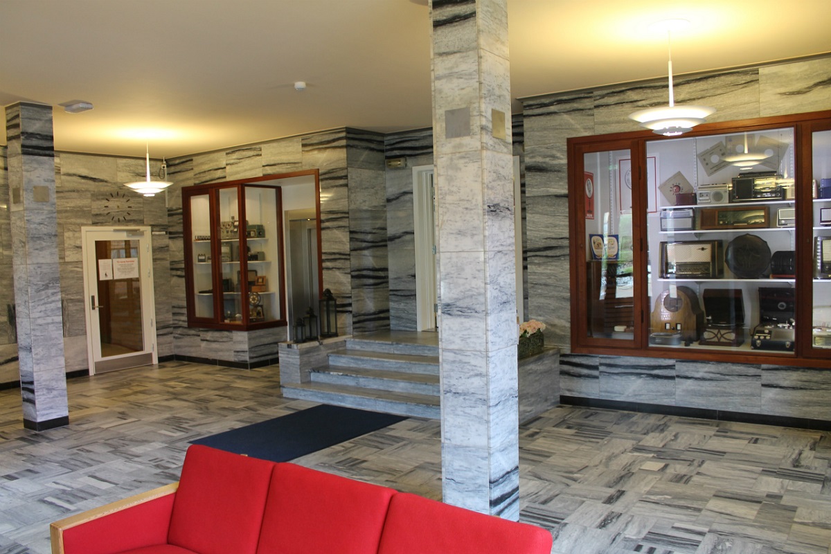 I den smukke "Marmorhall", som er det første man møder efter passage af det, der var Håndværkerskolens hovedindgang
