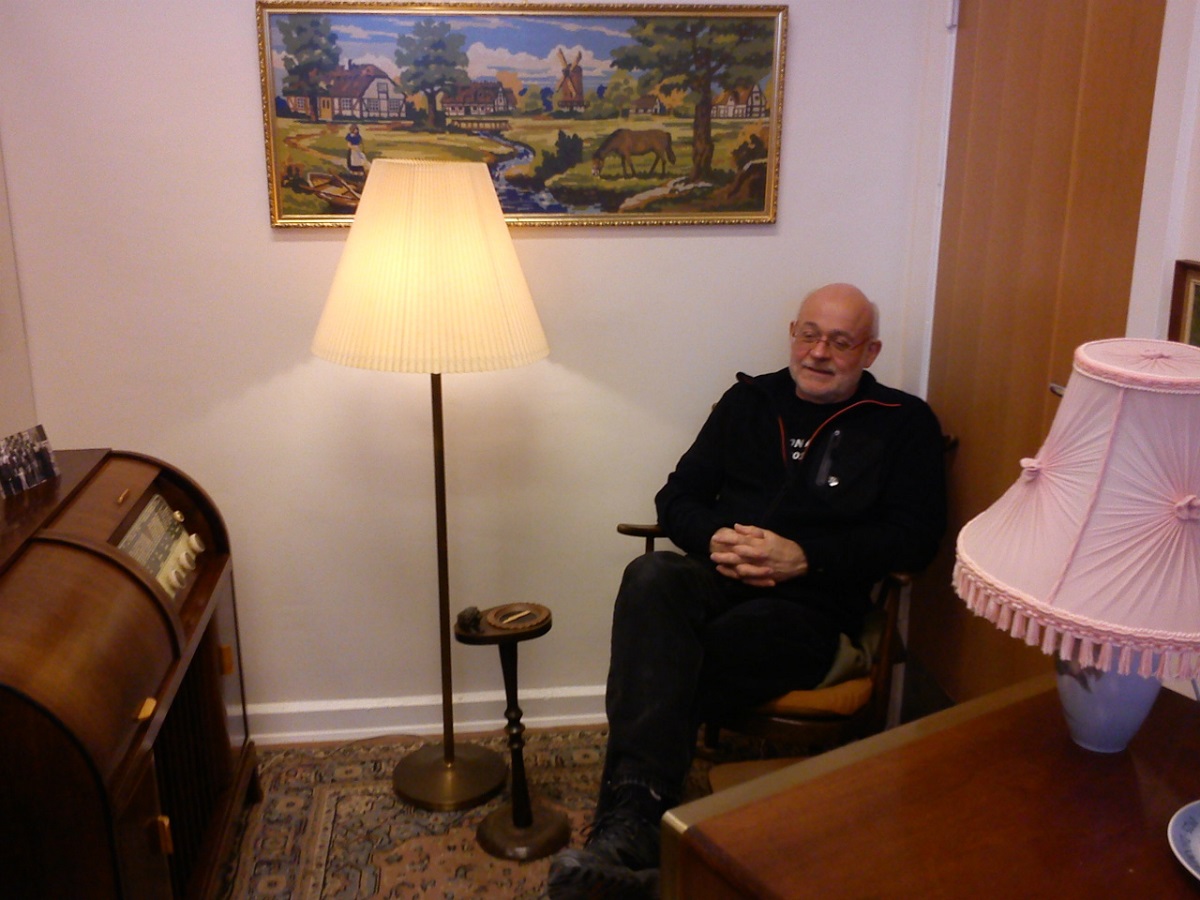 Museet direktør får en "morfar" i nostalgihjørnet. Læg mærke til hvor fint direktøren passer ind i miljøet