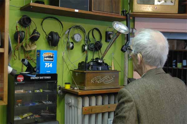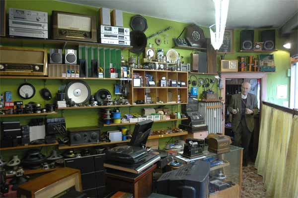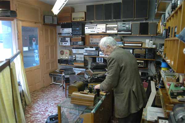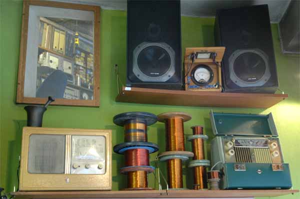 In the shop you find lots of old radios, grammophomes, tape recorders, and much more. And it works..