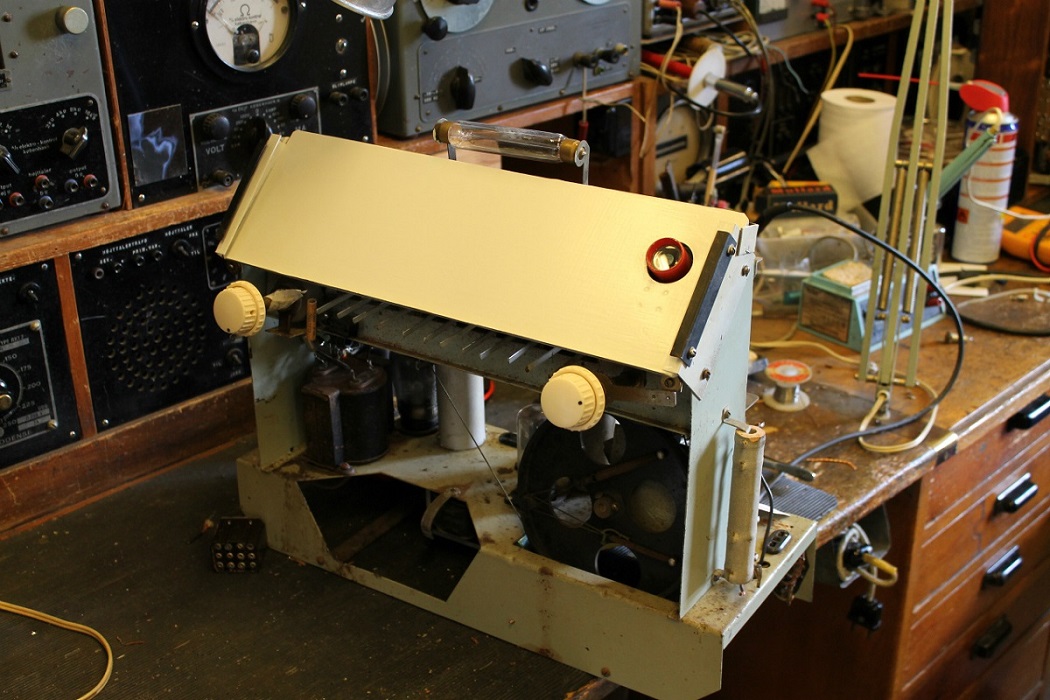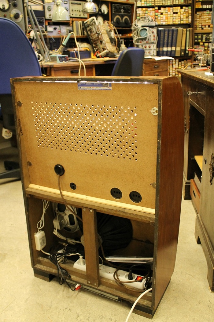Radioens nye bagbeklædning fremstillet af Sven. Læg mærke til den nyindbyggede højttaler, som anvendes af CD-afspilleren, der anes under bunden af radioen